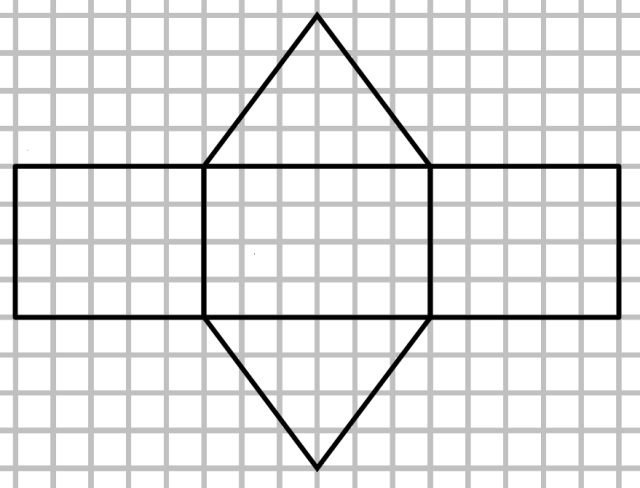 Kratka na rysunku ma bok długości . Trójkąt równoramienny to taki, który ma parę boków równych. W przykładowym rozwiązaniu podstawa graniastosłupa to trójkąt o bokach , i .