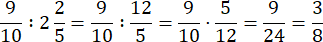Aby podzielić ułamek przez ułamek, należy pierwszy ułamek pomnożyć przez odwrotność drugiego: