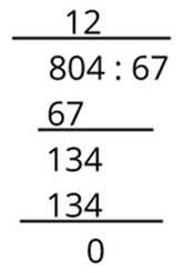 Wykonaj iloraz liczb 804 i 67 sposobem pisemnym.