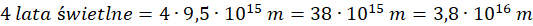 Pomnóż 4 lata świetlne przez wartość roku świetlnego, a otrzymany wynik zapisz w notacji wykładniczej: