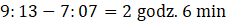 W tym zadaniu musisz obliczyć różnicę między godziną 7:07 a 9:13.