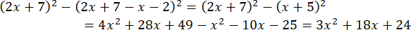 W tym zadaniu przedstaw, o ile większe jest pole kwadratu o boku długości (2x + 7) cm od pola kwadratu o boku krótszym o (x + 2) cm w postaci sumy algebraicznej.
