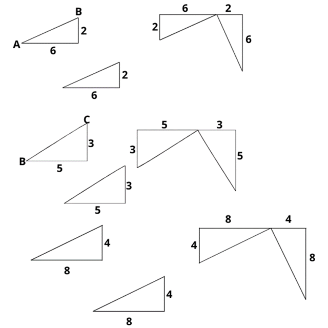 Odcinki o różnej długości mają inny kąt, jeśli chcielibyśmy ułożyć je jak w pokazanej metodzie. Co za tym idzie nie utworzy się kąt prosty w odcinkach prostopadłych ani odcinki nie będą równoległe.