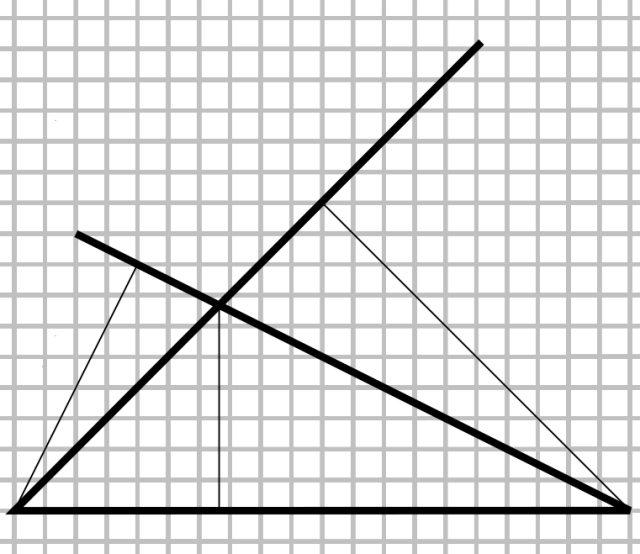 Te wysokości przecinają się w punkcie znajdującym się poza trójkątem.