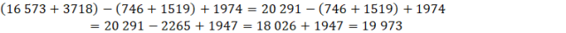 W tym zadaniu musisz wykonać obliczenia (16 573 + 3718) – (746 + 1519) + 1974 pisemnie.