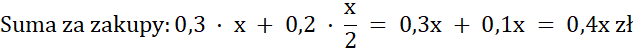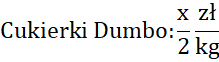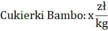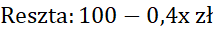 Podaj resztę, jaką otrzymała Zosia za zakupy, jeśli zapłaciła 100 zł za 30 dag cukierków Bambo po x zł za kilogram i 20 dag cukierków Dumbo, które są dwukrotnie tańsze.