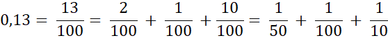 Znajdź trzy ułamki zwykłe o liczniku 1, których suma jest równa 0,13.