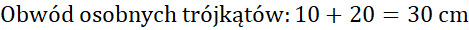 W tym ćwiczeniu musisz obliczyć różnicę w obwodach powstałej figury i obu trójkątów, a następnie długość boku łączącego trójkąty.