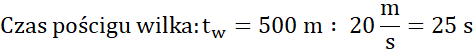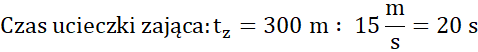 Oblicz, czy zającowi uda się ukryć w norze na czas, jeśli poruszał się z prędkością 15 i miał do nory 300 m, a wilk gonił go z prędkością 20 w odległości 200 m od zająca.