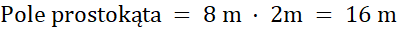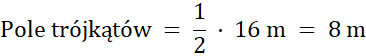 Zauważ, że suma długości podstaw tych trójkątów jest równa 8 m, czyli tyle samo co dłuższy bok prostokąta. Wysokość każdego z nich jest również równa krótszemu bokowi prostokąta. Zatem pole zacieniowanych trójkątów jest równe połowie pola prostokąta.
