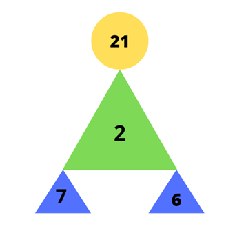 Reguła polega na przemnożeniu przez siebie niebieskich trójkątów, a następnie podzieleniu wyniku przez zielony trójkąt.