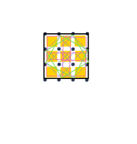 Jeden duży kwadrat – czarna ramka, 9 żółtych kwadratów, 4 zielone kwadraty, 4 niebieskie kwadraty, 4 różowe kwadraty.