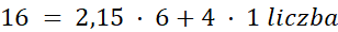 16 = 1 liczba + 2,15 + 1 liczba + 2,15 + 2,15 + 1 liczba + 2,15 + 2,15 + 2,15 + 1 liczba
