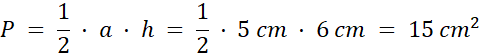 Oblicz pole figury wyliczając sumę pól dwóch trójkątów rozwartokątnych o podstawie 5 cm i wysokości 6 cm. Wtedy jednak część wspólna jest liczona 2 razy, więc od wyniku musisz odjąć pole trójkąta o podstawie 5 cm i wysokości 2 cm.