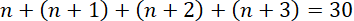 Suma 4 kolejnych liczb naturalnych wynosi 30:
