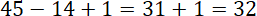 Liczbę elementów zbioru opisuje wzór , gdzie k to pierwszy element zbioru, a n to ostatni. Podstaw do wzoru zbiór liczb naturalnych od 14 do 45.