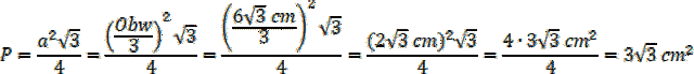 W tym zadaniu musisz policzyć pole trójkąta równobocznego, znając jego obwód równy