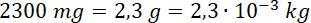 W tym zadaniu musisz przeliczyć 2300 miligramów na kilogramy i wybrać prawidłową odpowiedź zapisaną w notacji wykładniczej.
