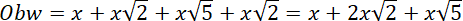 Przedstawiony czworokąt ma jeden bok długości x, dwa są przeciwprostokątnymi trójkąta równobocznego o boku x, mają więc długość