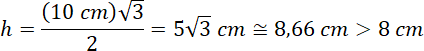 Wysokość trójkąta równobocznego o krawędzi równej 10 cm to: