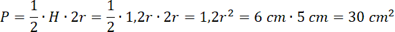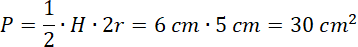 Oblicz pole przekroju, czyli pole trójkąta o wysokości równej H i podstawie równej 2r (średnicy podstawy stożka):
