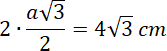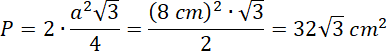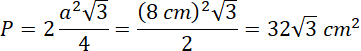 Pole rombu oblicz jako pole dwóch trójkątów równobocznych o boku 8 cm: