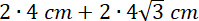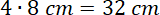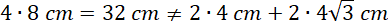 Prawda, a nawet obie – są takie same jak długości boków rombu, gdyż przekątne mniejszego czworokąta są równoległe do boków rombu i ograniczone prostymi zawierającymi boki, obie mają więc 8 cm.