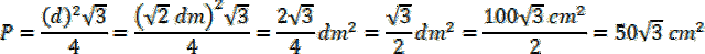 Następnie policz pole powierzchni trójkąta równobocznego o krawędzi równej d:
