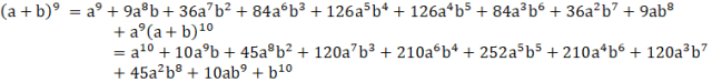 Podaj wierszami wartości trójkąta Pascala dla wartości 9 i 10, a następnie wypisz wzory na