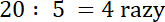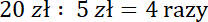 Podziel 20 zł przez 5 zł.