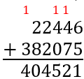 Pamiętaj, że w dodawaniu pisemnym dodajesz do siebie kolejno od prawej: jedności, dziesiątki i setki. Zatem, żeby otrzymać liczbę 404521, do liczby jednostek 6 dodaj liczbę 5, do liczby dziesiątek (4+1=5) dodaj 7, a do liczby setek (4+1=5), aby otrzymać 5, dodaj 0… Postępuj w ten sposób, aż otrzymasz liczbę 404521.