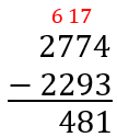 2774 – 2293 = 481