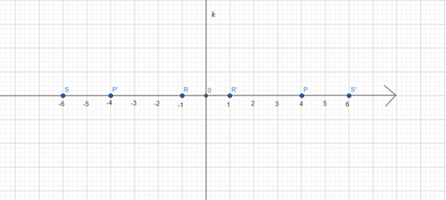 Odległość danego punktu od zera i odległość punktu, który jest jego lustrzanym odbiciem względem prostej k, przechodzącej prostopadle do osi przez punkt o współrzędnej 0, jest taka sama.