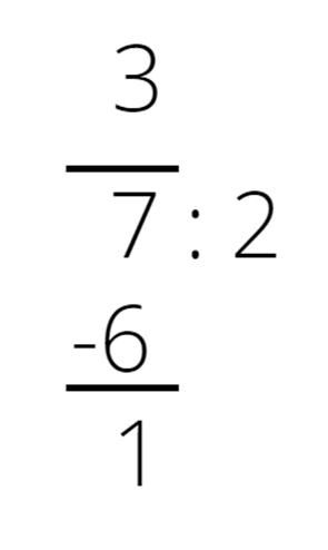 Zapisz dzielenie 7 : 2 podobnie jak w poprzednim zadaniu.