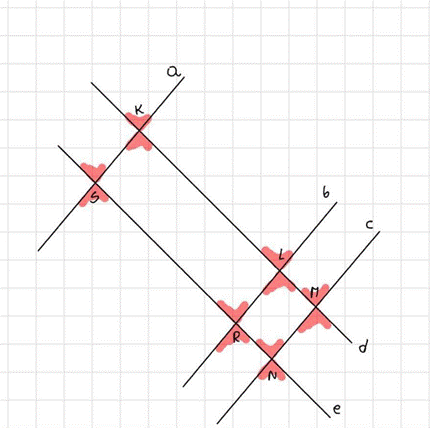 Gdy prosta przecina dwie proste równoległe do siebie nawzajem, to utworzone przez nią pary kątów są takie same. Dodatkowo tworzą się także kąty wierzchołkowe, które maja takie same miary. Skorzystaj z tych własności. Pamiętaj także, że kąt rozwarty to kąt o mierze większej od 90º.