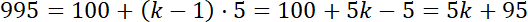 Teraz rozpatrz wszystkie liczby trzycyfrowe podzielne przez 5: 100, 105, 110, …, 995.