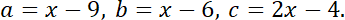 Liczby a, b, c tworzą ciągu arytmetyczny dla: