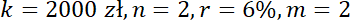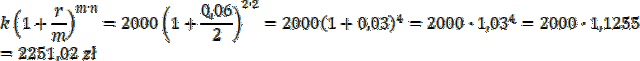 Podaj, ile będzie wynosił kapitał, jeżeli wpłacono 2000 zł na dwa lata (roczna stopa procentowa wynosi 6%), a odsetki są kapitalizowane co pół roku.