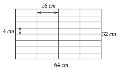 Lektura ma 16 cm długości, a regał ma 64 cm długości. Więc na regale zmieści się: 64 : 16 = 4 lektury na długość i 32 : 4 = 8 na wysokość.