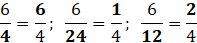 W rozwiązaniu podano przykładowe wartości (pogrubione liczby). Znajdziesz je poprzez skracanie i rozszerzanie ułamków – w dwóch pierwszych przypadkach licznik stanowi