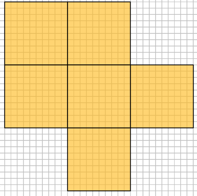 W tym zadaniu musisz ułożyć kilka figur z pięciu kwadratów wyciętych z papieru i postarać się, by uzyskana figura miała jak największą sumę długości boków.