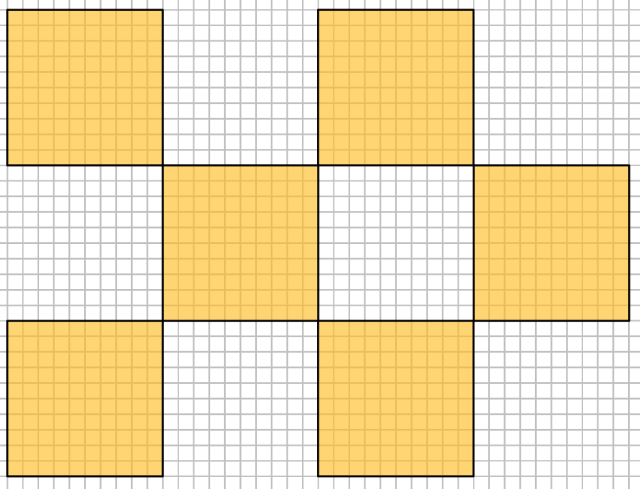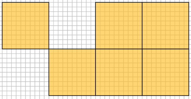 Żeby ułożyć figurę o jak największym obwodzie, musisz ułożyć kwadraty tak, żeby nie stykały się bokami.