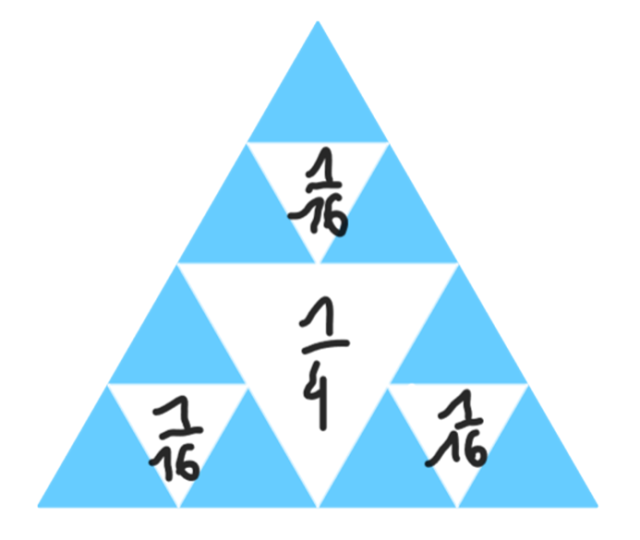 Oblicz pole ostatniej z figur przedstawionych na rysunku, jeśli pole wyjściowego trójkąta wynosi 1.