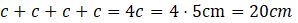 Za pomocą wyrażenia algebraicznego opisz obwód figury oraz oblicz jego wartość dla podanej wartości liczbowej c=5 cm. Narysuj inny czworokąt o równych bokach oraz nazwij go.