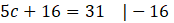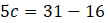 Za pomocą równania napisz liczbę punktów, które Mateusz otrzymał za rozwiązanie każdego z pięciu zadań za c pkt, jeśli otrzymał 31 pkt, a za resztę zadań otrzymał 16 pkt.