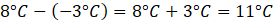 Oblicz różnicę temperatur panującą w dzień (8°C) i w nocy ( – 3°C)