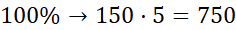 Zwróć uwagę, 20% szukanej liczby to 150. Aby wyliczyć tę liczbę, musisz pomnożyć liczbę, która stanowi jej 20% przez 5, by otrzymać 100% szukanej liczby.