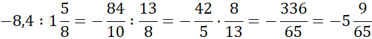 Pamiętaj, iloraz liczb ujemnych jest dodatni, a iloraz liczby dodatniej i ujemnej – ujemny. Zapisz liczby mieszane jako ułamki niewłaściwe. Pamiętaj, by zamienić dzielenie przez ułamek na mnożenie przez liczbę do niego odwrotną. Na koniec wyłącz całości przed ułamek.