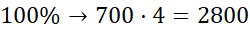 Zwróć uwagę, 75% szukanej liczby to 2100, a trzy razy mniejsza liczba, czyli 700 stanowi 25% liczby, którą chcemy obliczyć. Aby wyliczyć tę liczbę, musisz pomnożyć liczbę, która stanowi jej 25% przez 4, by otrzymać 100% szukanej liczby.