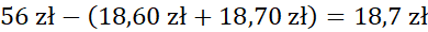 By obliczyć cenę piórnika, musisz obliczyć resztę po zakupie lektury i wynik pomnożyć przez 0,5. Pamiętaj, że najpierw wykonujemy działania w nawiasie. Na koniec musisz od pieniędzy Kamila odjąć cenę lektury i piórnika.